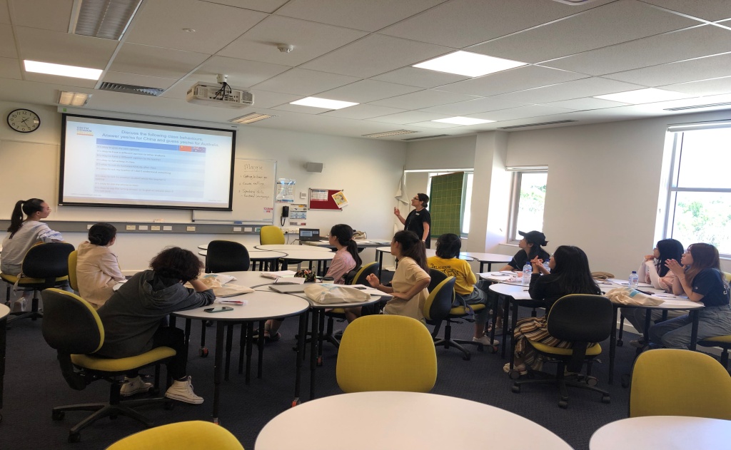 冬季班学生在语言实验室听课与讨论