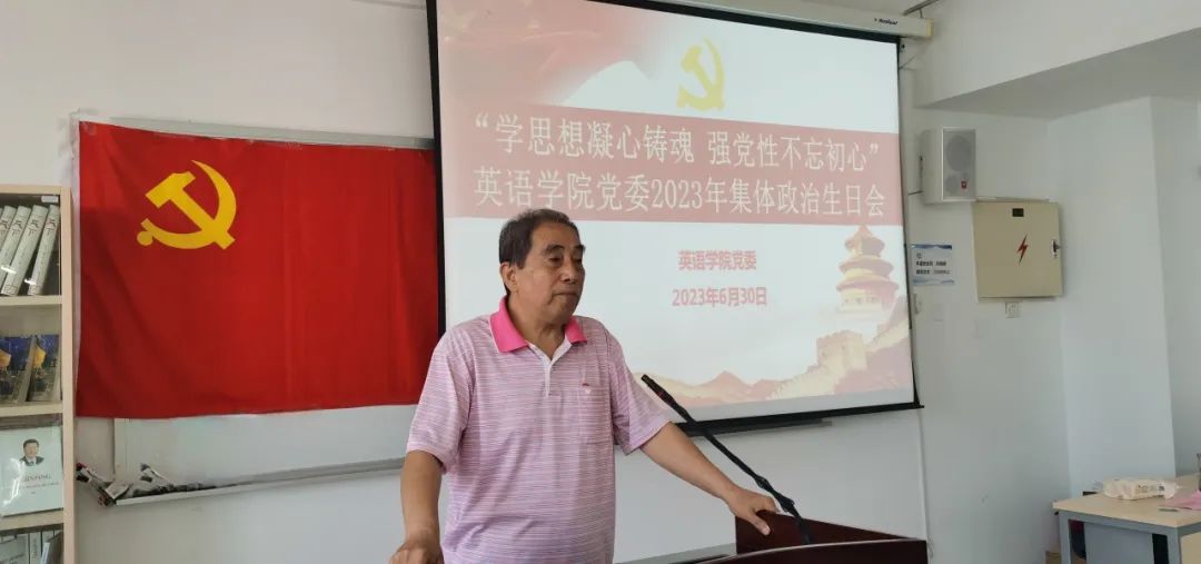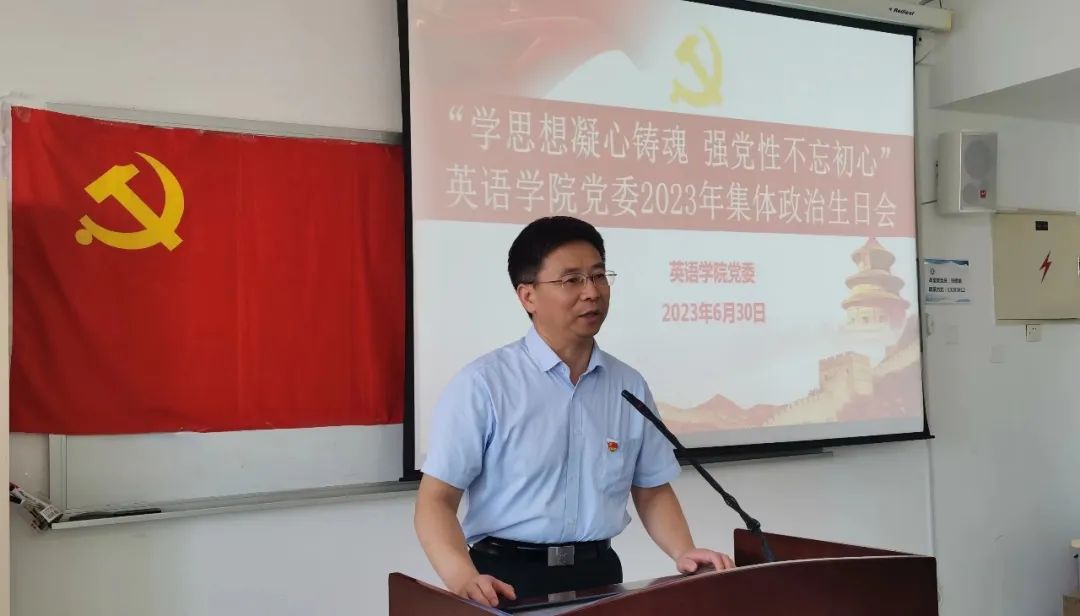 学院党委精心准备了《入党申请书》复印件作为政治生日礼物,撰写生日寄语,既是党组织对党员关怀的体现,也是对大家勤勉工作、踏实奉献的致敬。胡志刚现场为入党25年、20年、15年、10年的教师党员代表赠送生日礼物,带领全体与会党员面向党旗庄严宣誓,铭记铮铮誓言。他表示,作为一名入党30年的老党员,在中国共产党成立102周年之际,和老党员、新党员代表共同参加集体政治生日会特别有意义,新老党员共同交流入党心路历程,朴素的语言、真挚的情感表达了爱党爱国的热情。胡书记向大家讲述了天外师生党员抗疫、新疆支教等身边优秀党员的故事,他寄语新党员:一要永远牢记自己中共党员的身份,牢记使命、践行初心;二要努力践行入党誓词,听党话、感党恩、跟党走,旗帜鲜明讲政治,踏踏实实完成党组织交办的各项任务。