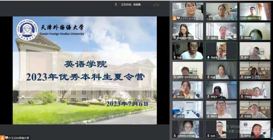 7月6日上午,全体营员相聚“云端”,共同参加了夏令营开营仪式。通过开营仪式,营员们从多角度初步了解了天外565net必赢的基本情况,涵盖学院历史、师资队伍、招生规模、学科方向、人才培养、学术交流等多个方向,营员们对学院的整体情况有了初步认识。