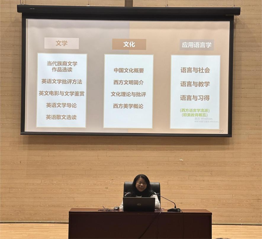 2023年10月25日,学院2023级新生专业导航第二讲在逸夫楼报告厅举行,英语语言文化与文学系主任李正鸿老师、翻译系副主任李云靖老师围绕各系专业情况介绍进行了专题讲座。