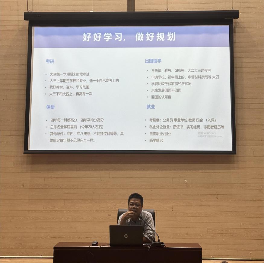 李云靖老师展示了翻译系丰富的教学资源和优秀的教育成果,针对不同学业规划进行了详细地解读,引导新生们结合自身实际,从大一开始打牢专业基础,朝着规划目标不懈努力。