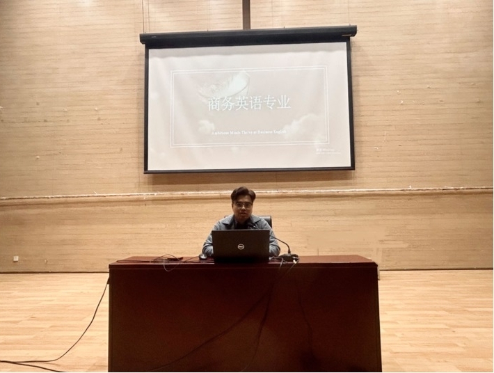 王申老师从商务英语专业的设立背景入手,从雄厚的师资力量、优质的教学资源、广阔的实习平台等方面详细介绍了专业优势,强调了加强专业素养、拓展商务知识的重要性。随后,他通过优秀校友事例鼓励同学们积极参加各类专业竞赛,考取专业资质证书,努力成为通语言、懂商务、会技术、能服务的商务英语人才。