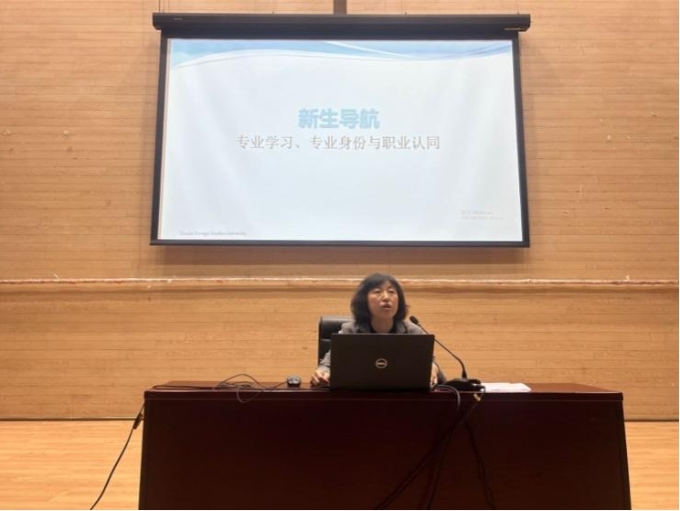 2023年10月30日,学院2023级新生专业导航第三讲在逸夫楼报告厅举行,英语国际商务系主任王申、英语传媒系主任王静两位老师围绕专业学习方法和相关专业方向介绍进行了专题讲座。