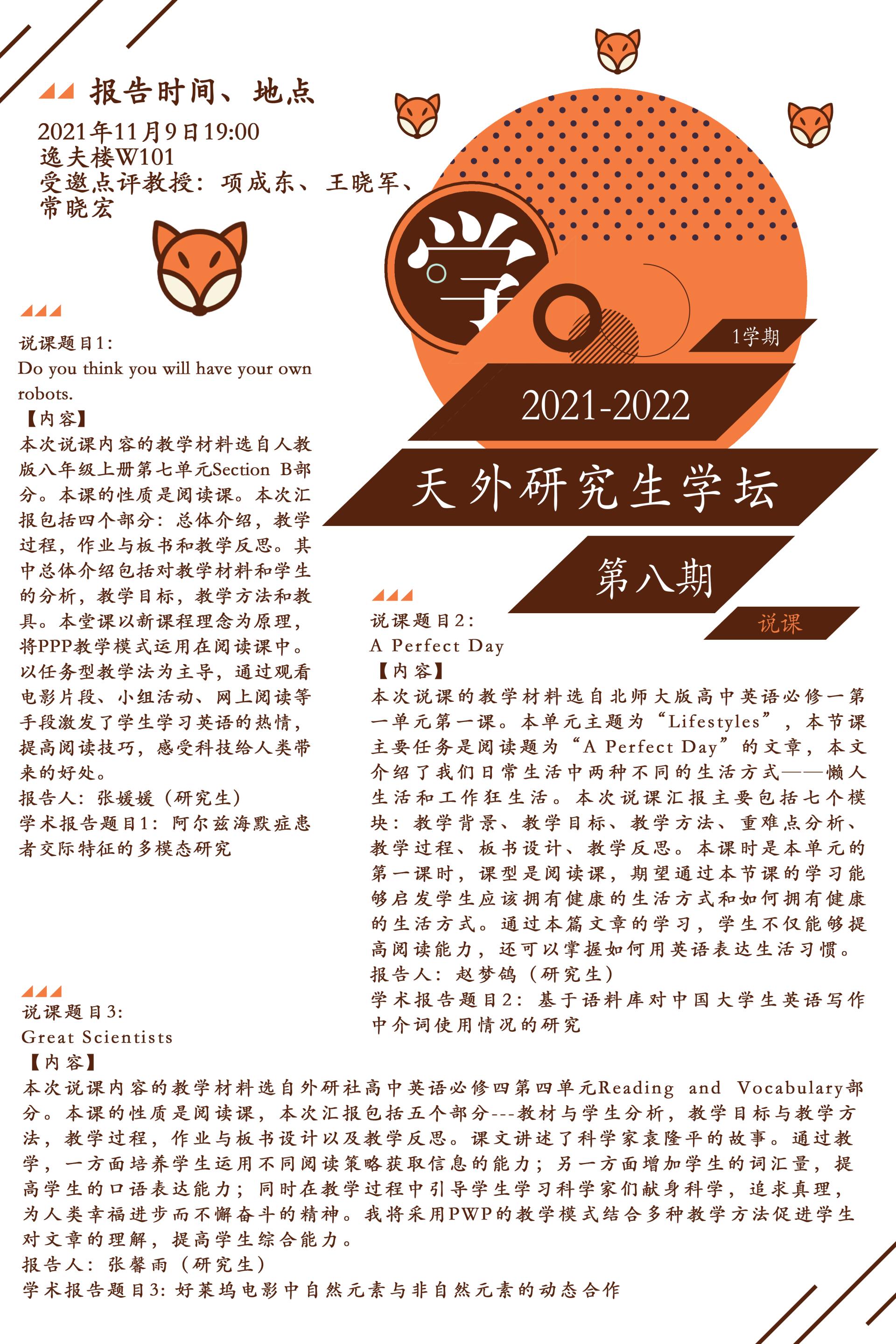 【学坛】2021-2022-1学期天外研究生学坛第八期