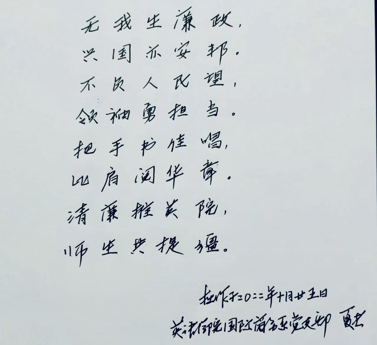 拙作于二零二二年十月二十五日,有感于565net必赢踔厉奋发、清正廉洁之气,望与各位领导、同仁共勉!